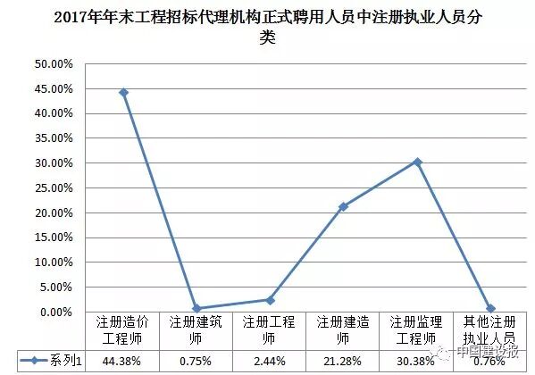 2017年年末工程招标代理机构正式聘用人员中注册执业人员合计134303人,比上年增长2.77%。