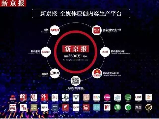 据悉,目前新京报的原创内容平台已覆盖了约3000万用户,全媒集群包括报纸、新京报网、拍者网、新京报新闻客户端、新京报数字报、新京报官方微博以及30多个的微信矩阵,还有5个“新京报+互联网”产品:“动新闻”;“有时”;“大燕网”和“我们视频”;“寻找中国创客”。由此可见,新京报的全媒平台是“货真价实”的。