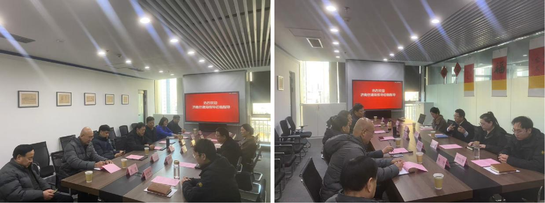 1月20日,济南市住房和城乡建设局二级巡视员安纪文带领局绿色建筑节能与科技处、机关党委、市城乡建设发展服务中心有关人员到我司围绕工程建设领域新材料、新技术、新装备研发应用开展专题调研。市城乡建设发展服务中心党委书记、主任李善坤,局机关党委专职副书记关学军等陪同调研。